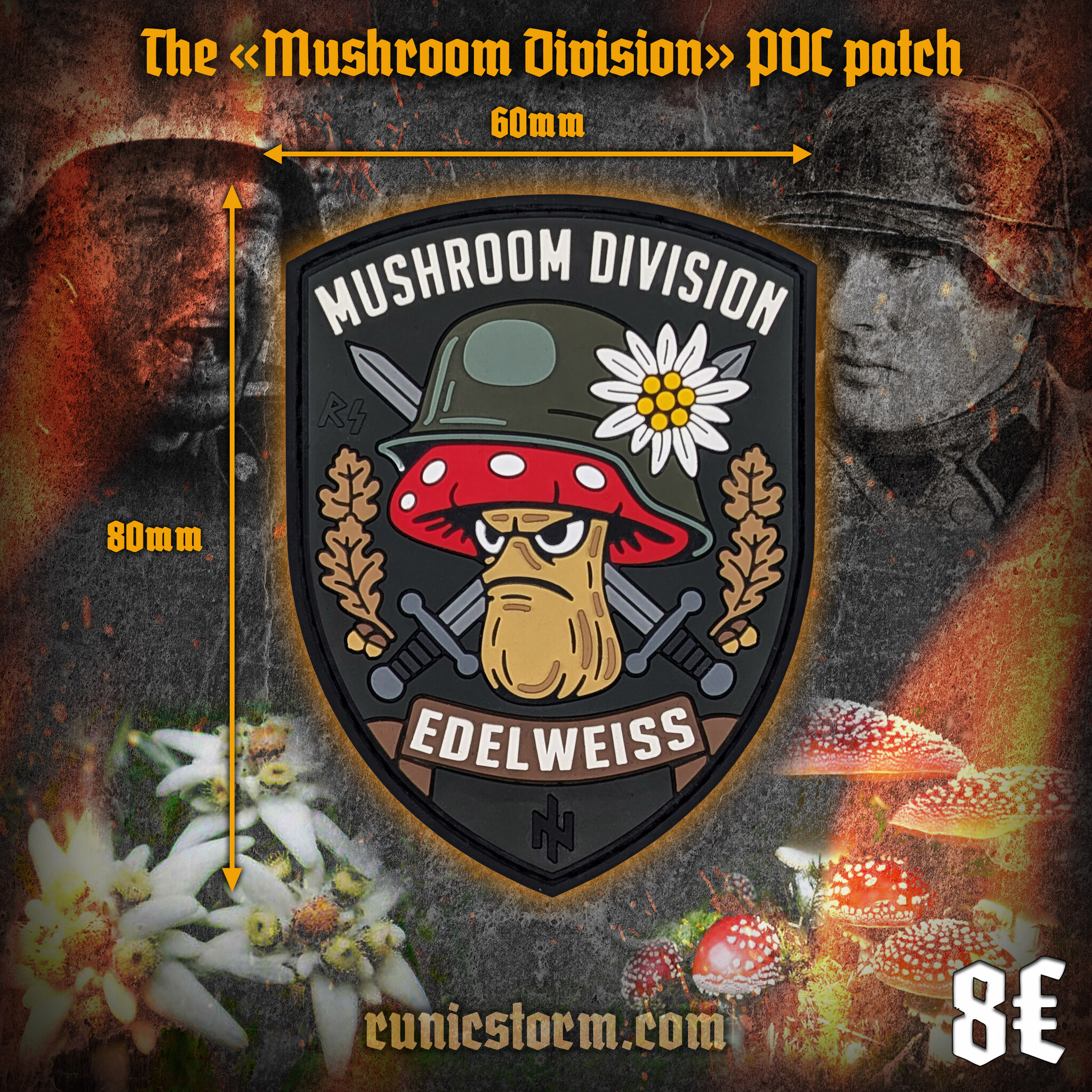 New The «Mushroom Division» PVC patch SKU: W782 Stock Status: 25 Delivery Status: 10-14 days Keywords: #mushroom $9 Quantity Add To Cart Description There is no description for this product yet. Technical Data Size 80mm × 60mm