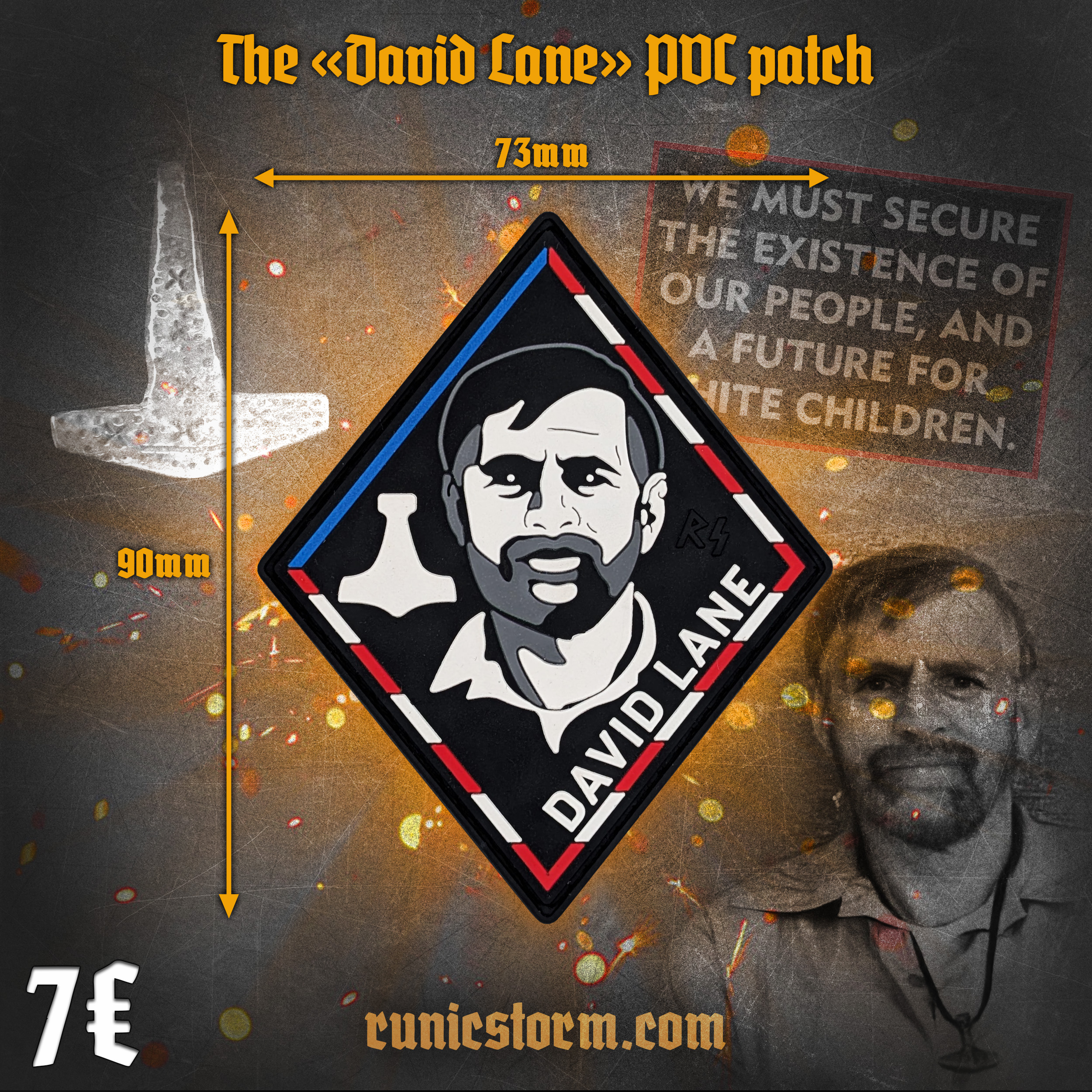 The «David Lane» PVC patch #famouspeople #davidlane David Lane was an American white nationalis, best known for coining the “14 Words” slogan: “We must secure the existence of our people and a future for white children.” He was a founding member of the white nationalist group The Order, which was active in the early 1980s. Lane was convicted for his involvement in the murder of leftist radio host Alan Berg in 1984, as well as multiple other actions including racketeering and conspiracy. He died in prison in 2007. ? Limited edition: 100 copies ⚡️Size: 90mm × 73mm ? For Adults 18+ Only ? Runic Storm accepts payments via: paypal.com, wise.com, revolut.com