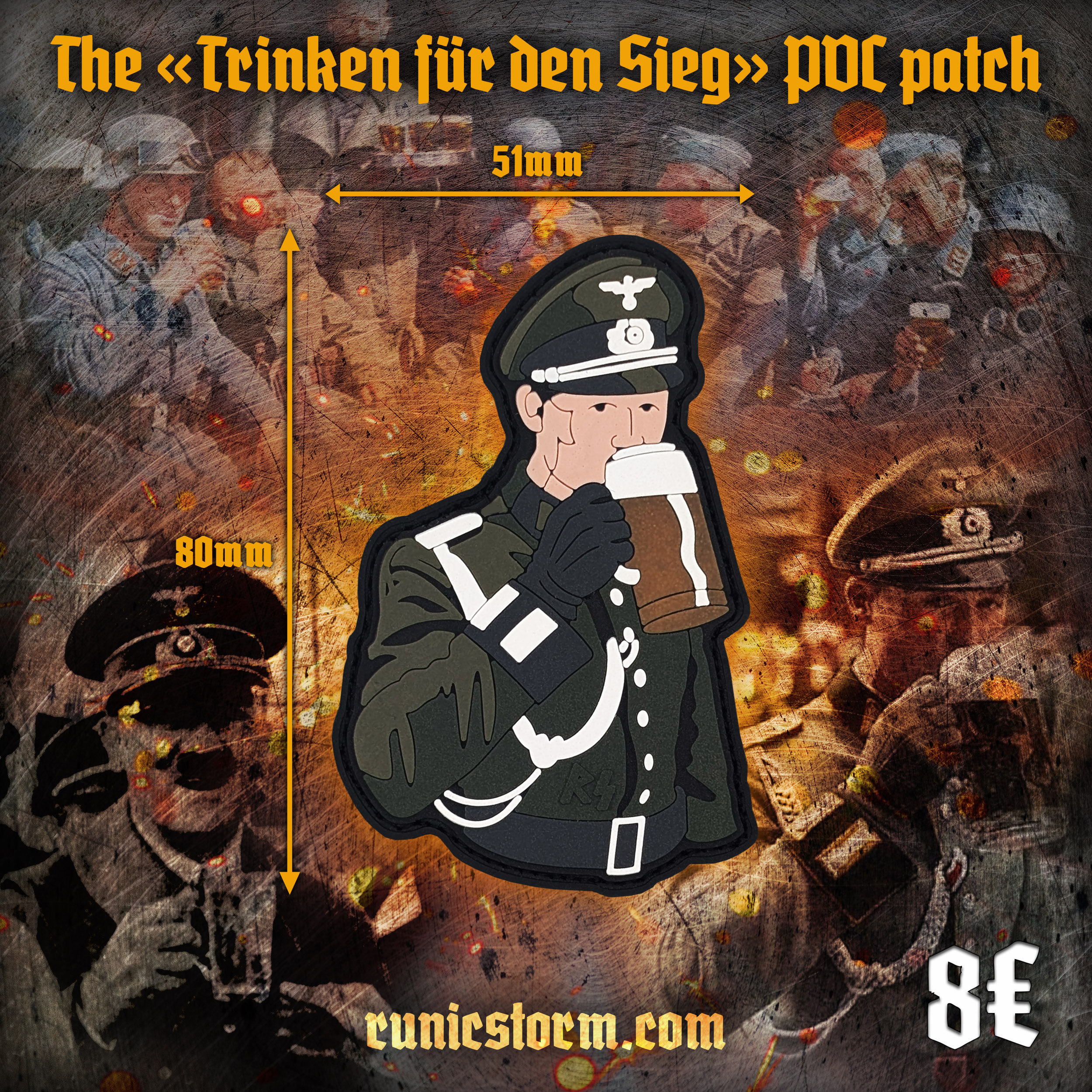 The «Trinken für den Sieg» PVC patch #beer ? Size: 90mm × 51mm ? Limited edition: 100 copies ? For Adults 18+ Only Embrace European Pride: Our clothing line celebrates European heritage and nationalist ideals. Crafted in Europe: Each garment is meticulously crafted in Europe, reflecting our commitment to quality and supporting local artisans. Strengthening Nationalist Movements: By choosing our brand, you are directly supporting the growth and development of nationalist groups across Europe. Worldwide Shipping: We offer complimentary shipping to customers worldwide, spreading our message across borders. ? Runic Storm accepts payments via: paypal.com, wise.com, revolut.com